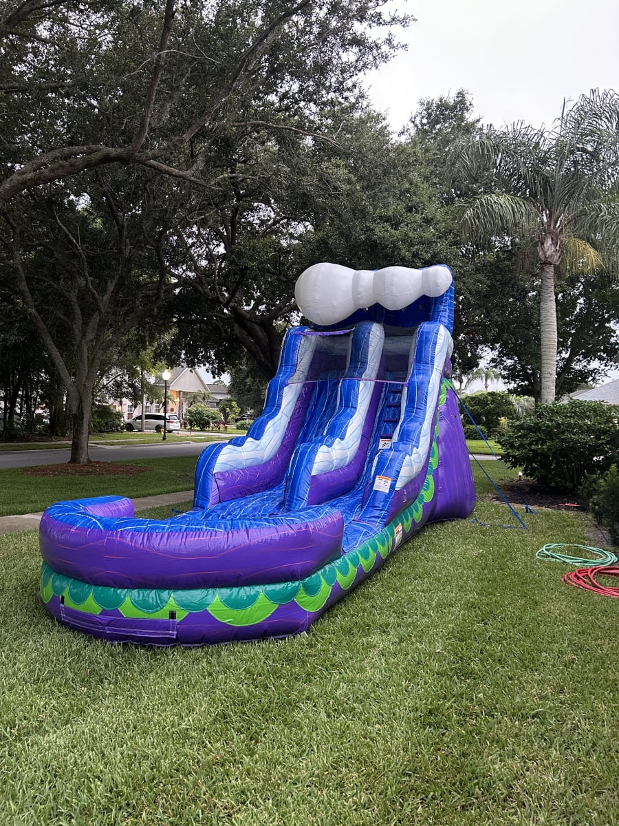 Our waterslide rental 15' Wave Wizard Slide in Ormond Beach, Ormond By The Sea, Holly Hill, Daytona Beach, South Daytona, Port Orange, Palm Coast, New Smyrna, Deland offers hassle-free delivery and setup, ensuring your event is worry-free and full of fun. Our team handles everything, so you can focus on enjoying the day and making memories with your guests!